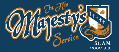Process: Primary to this project was developing a logo for the event. The theme was "In His Majesty's Service." After meeting with the